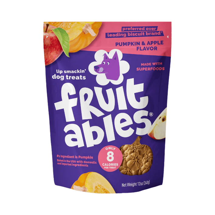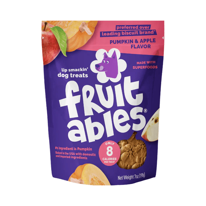 The comfort of home! Fruitables baked apple-inspired recipe combines fresh pumpkin, sweet apples, and a touch of cinnamon into a delicious bite that's sure to delight. Fruitables Pumpkin & Apple Crunchy Treats are CalorieSmart formulated with only 8 calories per treat. Made with superfoods and a crunchy baked texture, your dog will love the irresistible taste of these deliciously healthy treats. Open a bag today and smell the Fruitables difference!