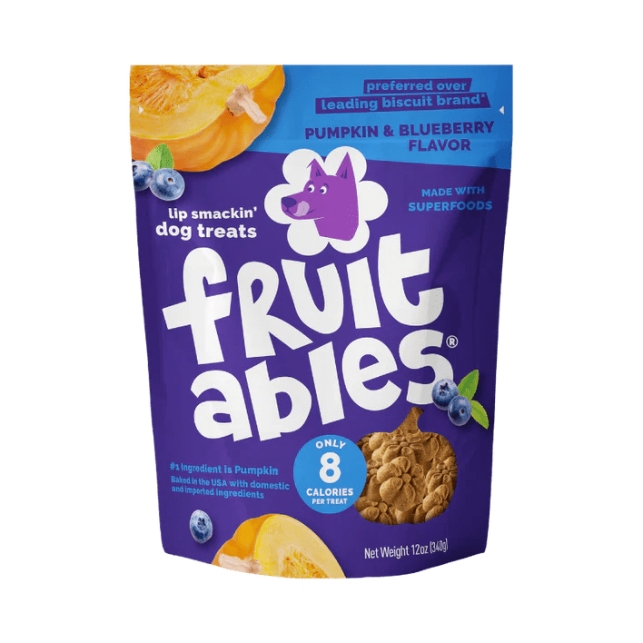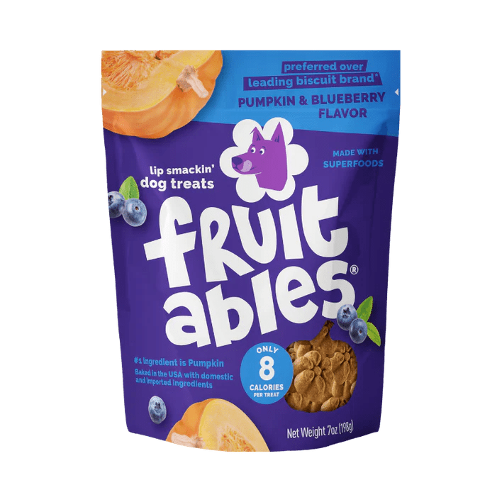 Homemade goodness! These tantalizing treats smell like muffins right out of the oven, loaded with pumpkin and blueberry and freshly baked just for your dog. Fruitables Pumpkin & Blueberry Crunchy Treats are CalorieSmart formulated with only 8 calories per treat. Made with superfoods and a crunchy baked texture, your dog will love the irresistible taste of these deliciously healthy treats. Open a bag today and smell the Fruitables difference!