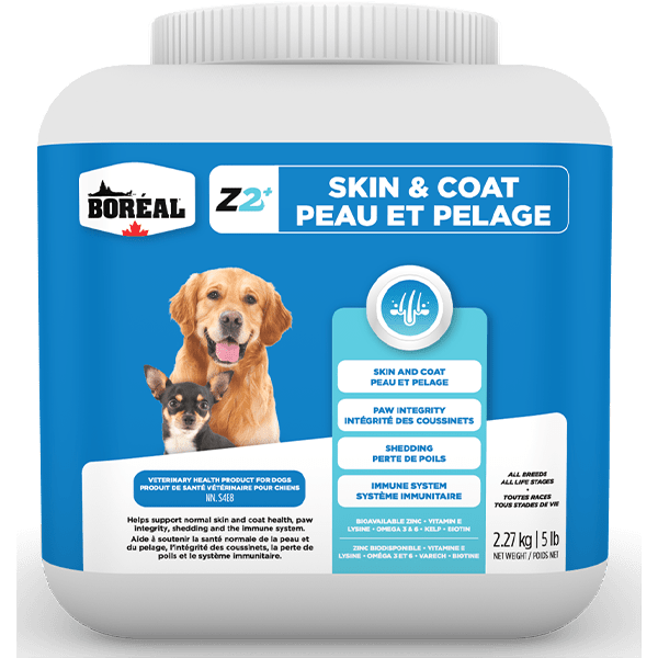 Introducing Z2+, a breakthrough supplement designed to elevate the health of your pet's skin and coat—and so much more. Powered by a unique blend of bio-available Zinc, Omega-3 and -6 fatty acids, Biotin, and Vitamin E, Z2+ delivers targeted support to promote healing and enhance overall well-being. A powdered supplement you sprinkle daily on your pets food. With multiple forms of advanced Zinc plus Biotin, Omega oils, Manganese and Iron. Research has shown dramatic improvements in skin and coat health, coat colour, stomach and gut health, paw pad health and mobility.